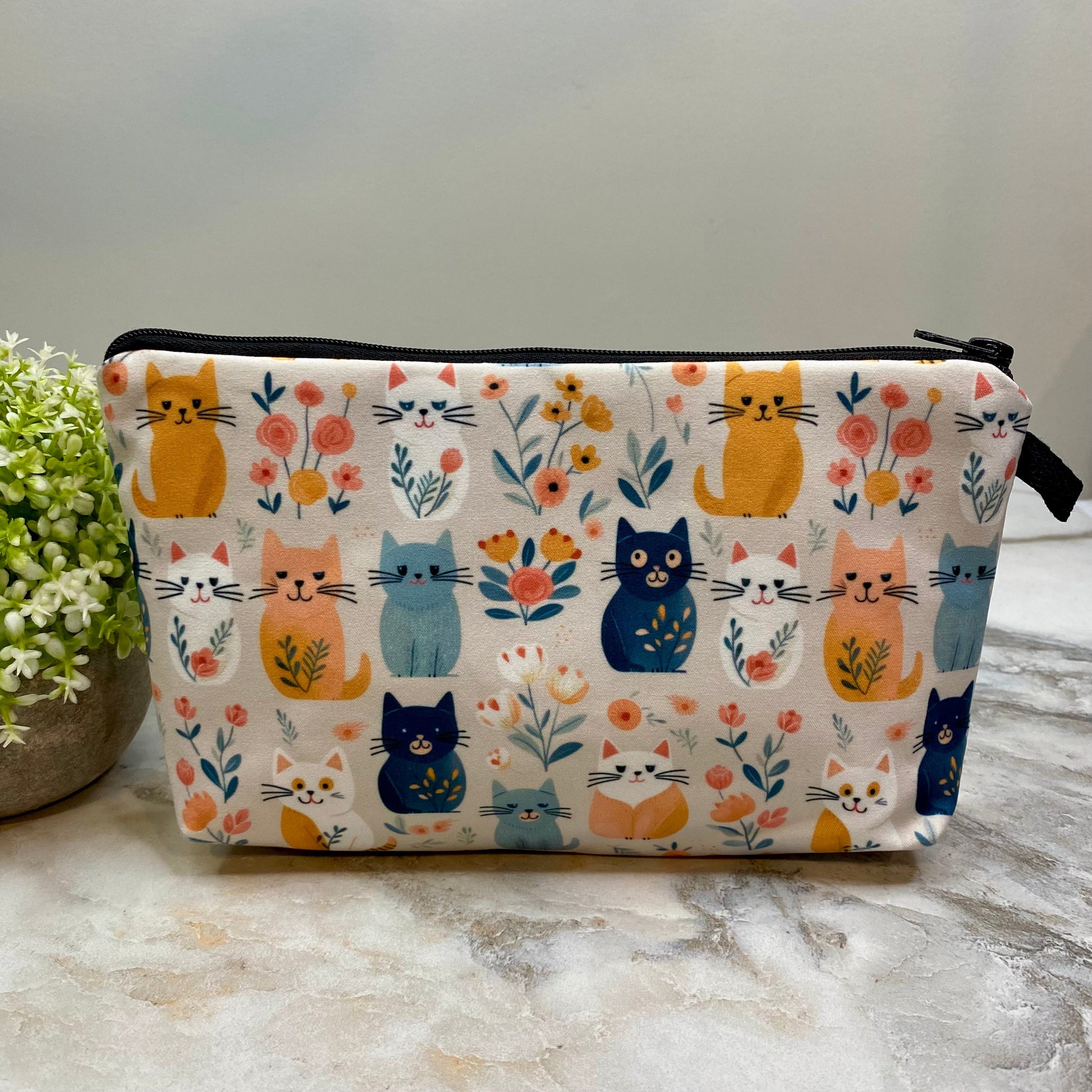 Pouch - Cat, Floral In A Row