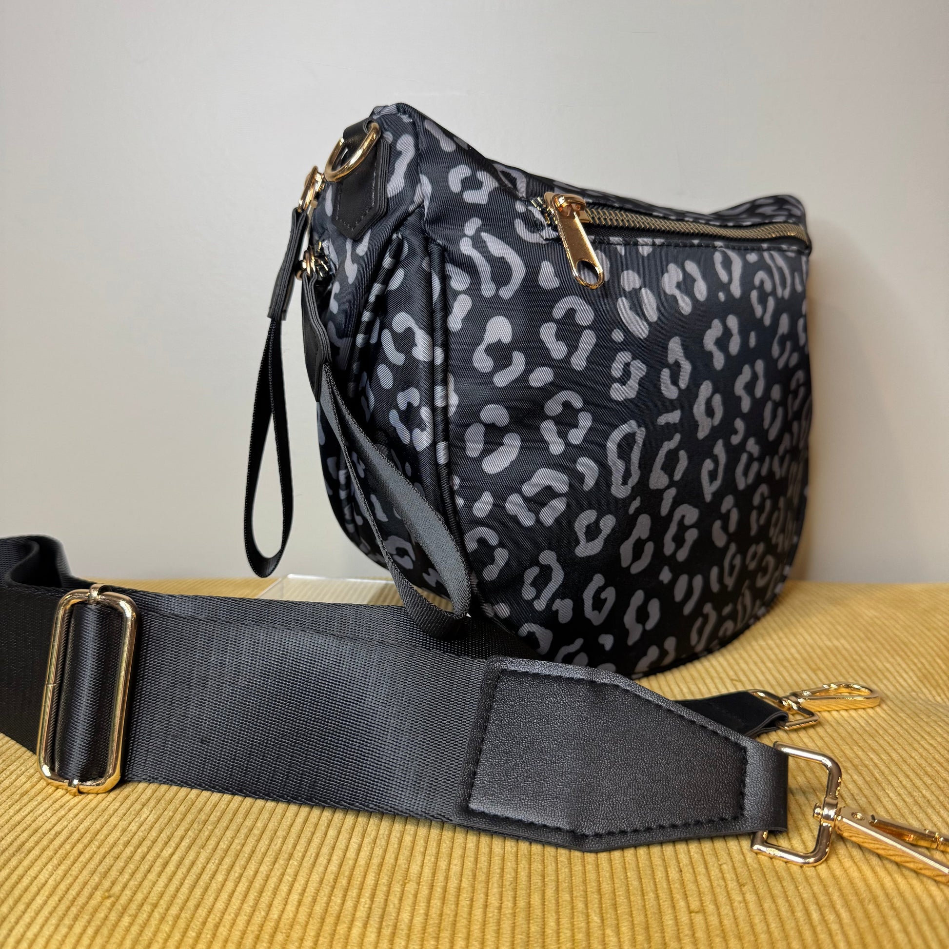 The Roni Nylon Crossbody - Black & Grey Animal - PREORDER