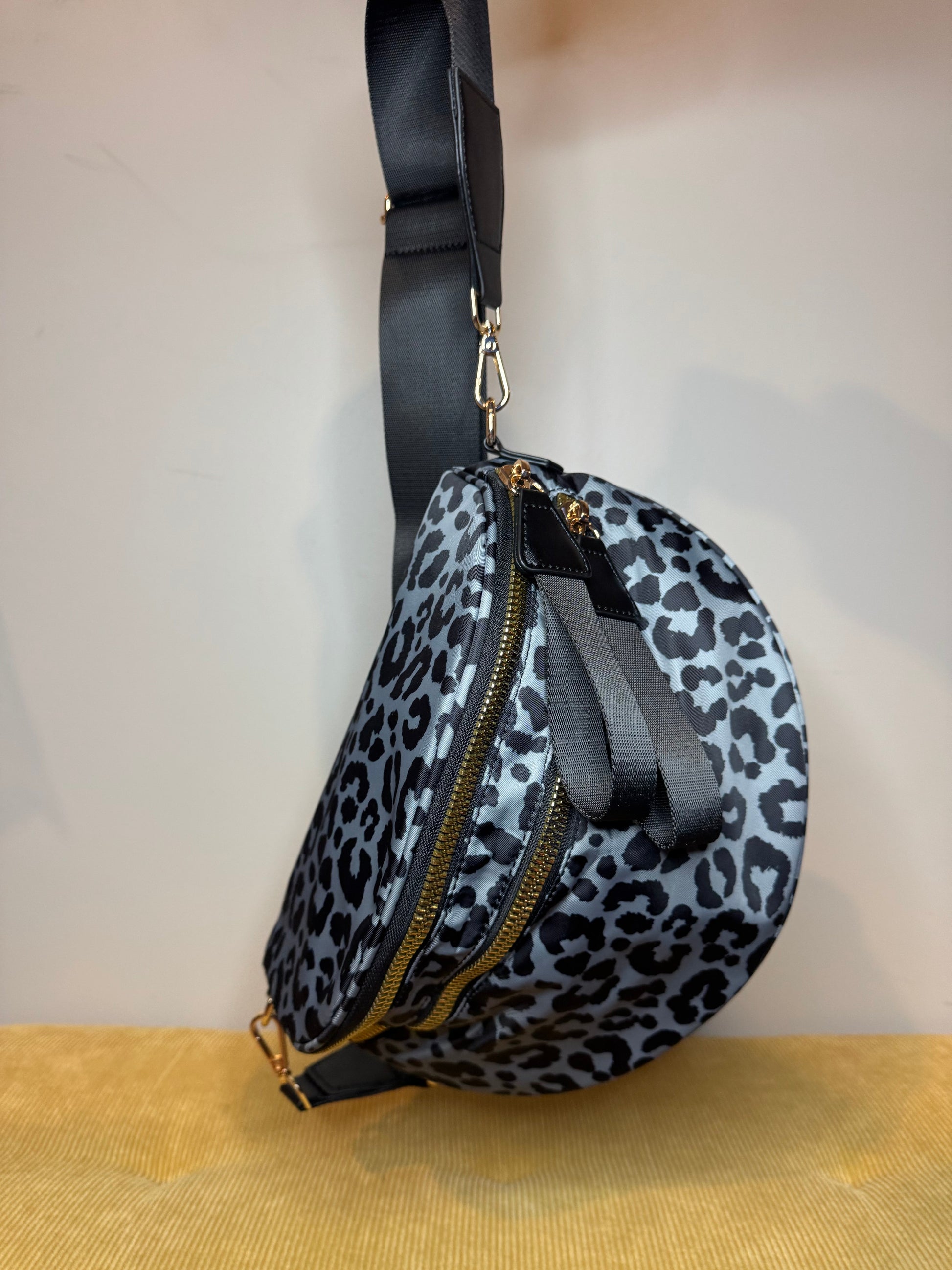 The Roni Nylon Crossbody - Animal Print Grey with Black