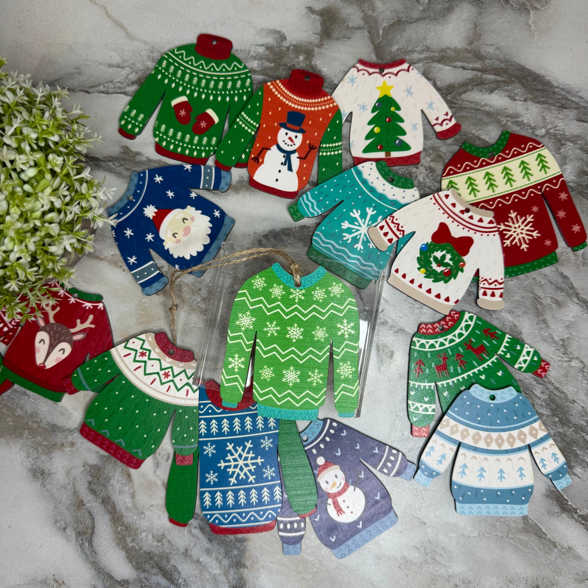 These wooden Christmas ornaments are perfect to hang on your tree, from your window, or around the house as decoration. These are flat and the design is on one side.