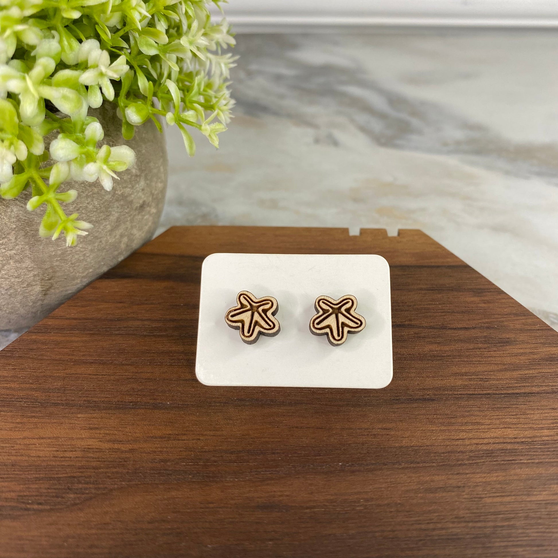 Wooden Stud Earrings - Starfish